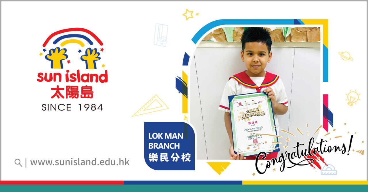 Congrats to Agamveer Singh from Lok Man Branch (School No.: 523526) for being awarded the Merit (Kindergarten Category) in the “Kowloon City District Outstanding Students Election”!